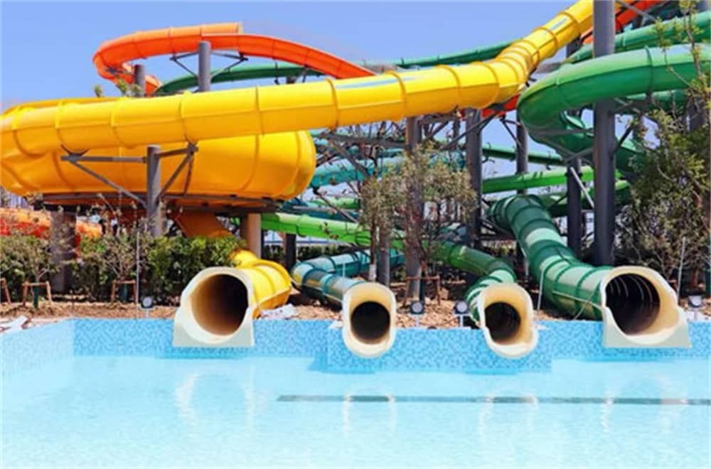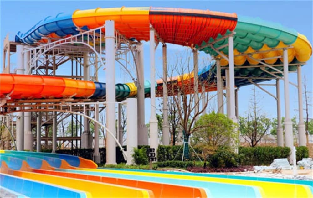 從一個敞開的封閉螺旋引道,從引道處滑下,繞過黑暗的一圈后,繼而迎接的是波浪竟賽滑梯,經過上上下下的滑行后最終落入一片落水池。